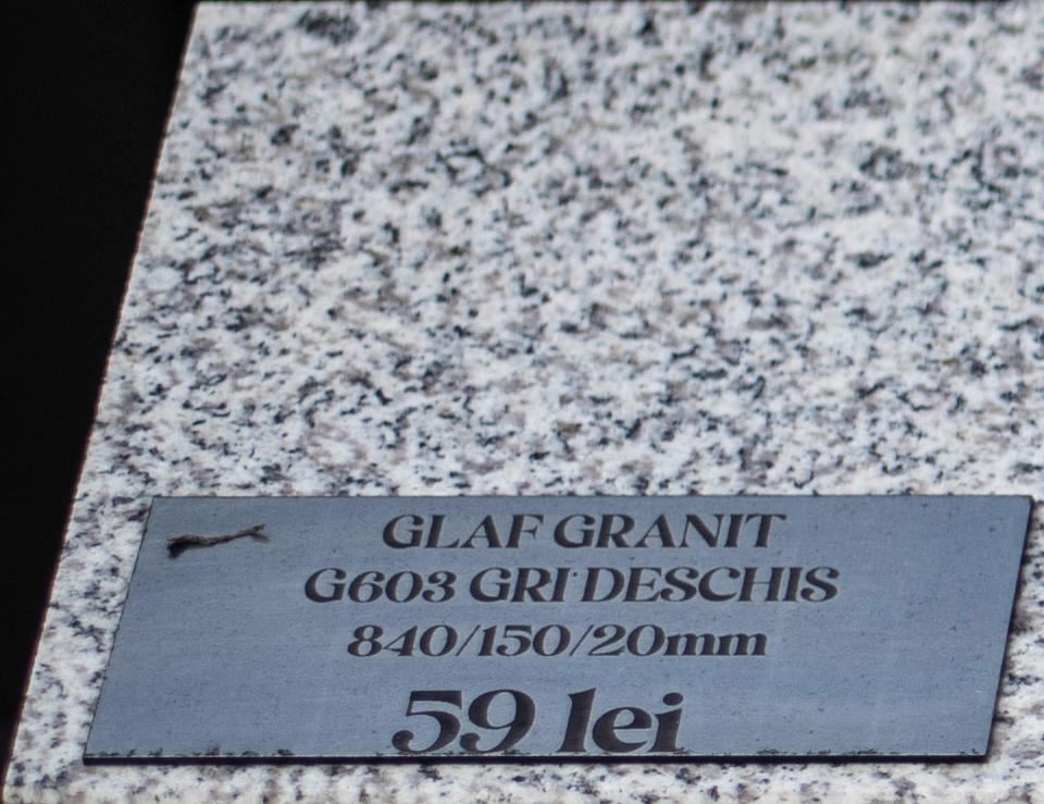 Glaf din granit natural G603, nuanță gri deschis, cu dimensiuni standard 840×150×20 mm. Ideal pentru utilizare atât la interior, cât și la exterior, oferind durabilitate, eleganță și rezistență în timp.